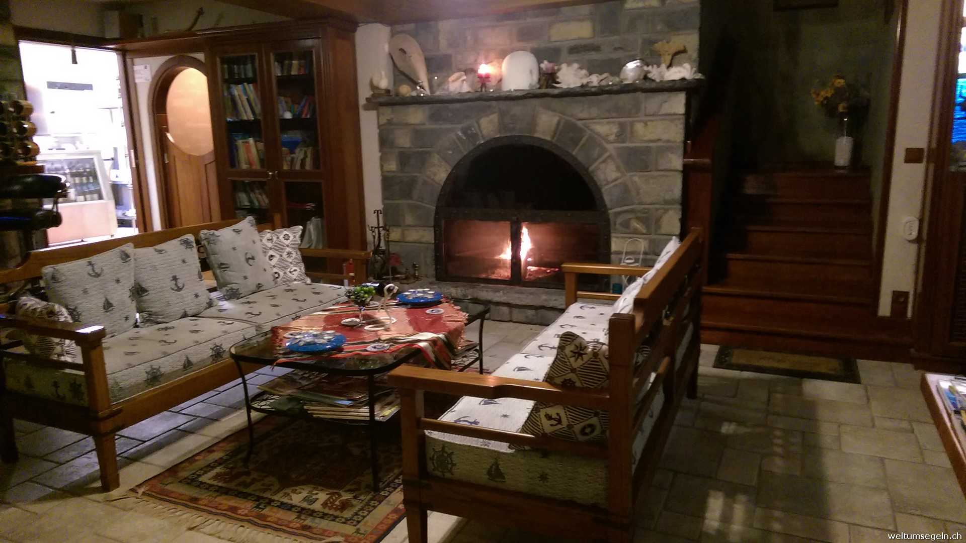 Einmal im Tag war ich bei Hakki im Restaurant essen, am Cheminee aufwärmen.