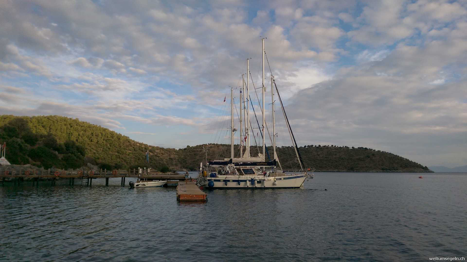 Das liegt zum einem am Schlachtfest in der Türkei und den damit verbundenen Feiertagen. Noch haben wir keine zuverlässige Verbindung zwischen Anker und Kette und wir möchten in den nächsten Tagen gerne Ankern und ruhig schlafen. Gute Kontakte ergeben sich schnell mit Bootsnachbarn und somit vergeht die Zeit recht amüsant. Die besseren Restaurants lassen sich auf diesem Wege ebenfalls besser finden.