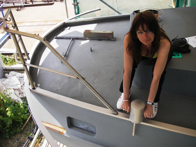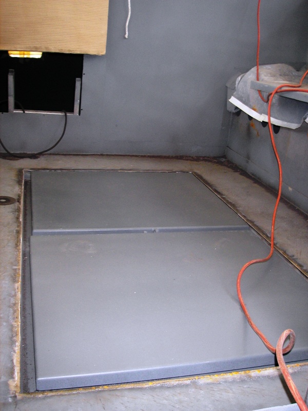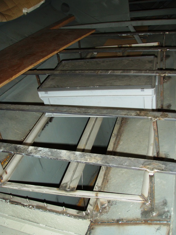 Die Reparaturarbeiten (Schweissen) nehmen viel Zeit in Anspruch. Der Wassertankdeckel (Bilgenboden)