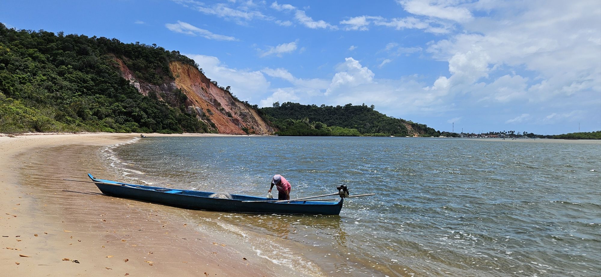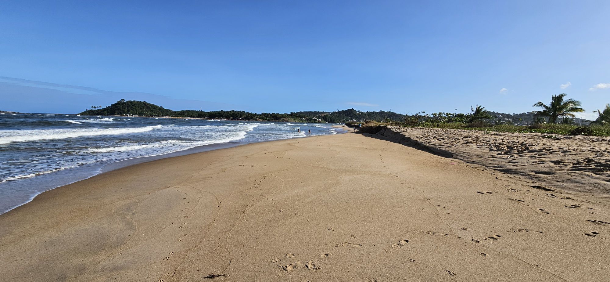 Wir haben eine schöne Segel Überführung nach Itacare. Wir fragen für die Einfahrt einen lokalen Kontakt an. Dieser meinte es sei Hochwasser und ist kein Problem. Gemäß Navionics sind wir eingefahren, bis 20kn Wind und Wellen von achtern, es ging nicht lange und schon rumpelte es. Zum Glück kam ein Fischer hinter uns, der die korrekte Einfahrt kannte. Beim Ankern vor dem Bojen Feld rumpelte es auch. So haben wir auf der anderen Seite der Bucht, vor der Sandbank geankert.