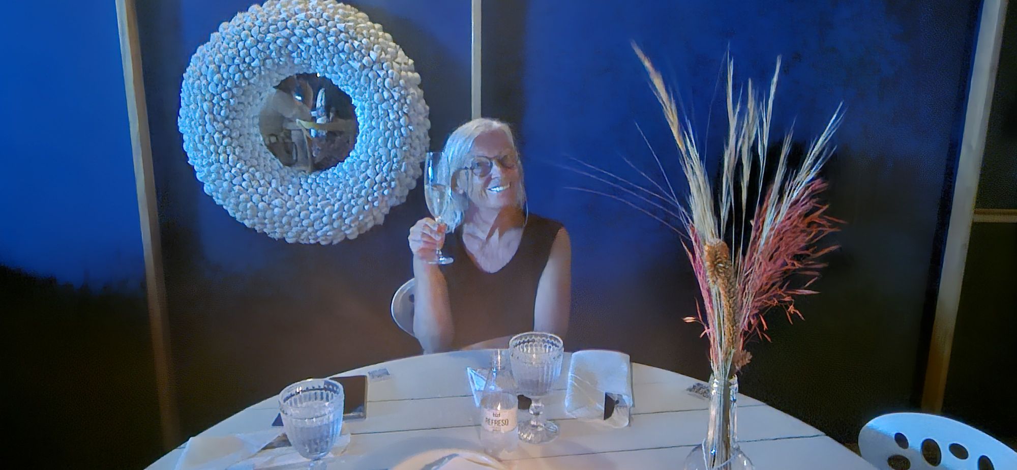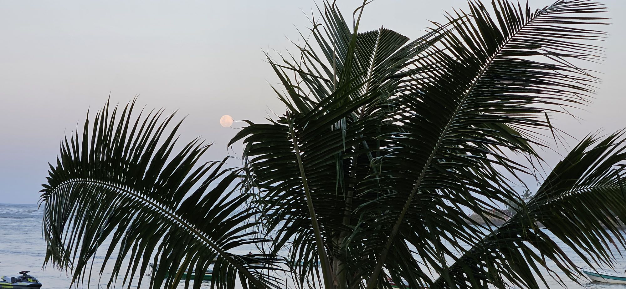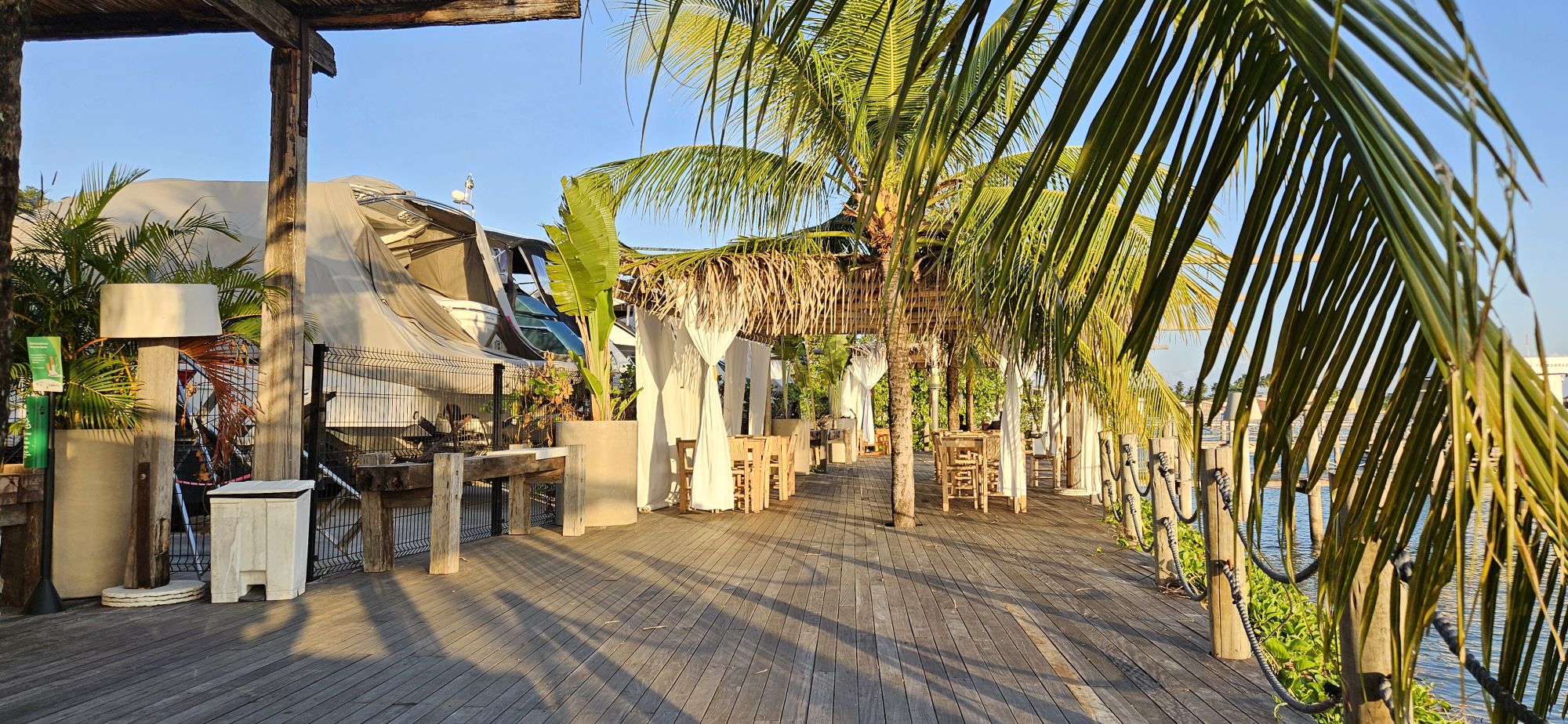 Es gibt auch ein ganz spezielles Restaurant im 1 Stock, dort geniessen wir bei einem Apero den Vollmond über der Bucht, auch die Küche ist exzellent, aber auch teuer. (€100)
