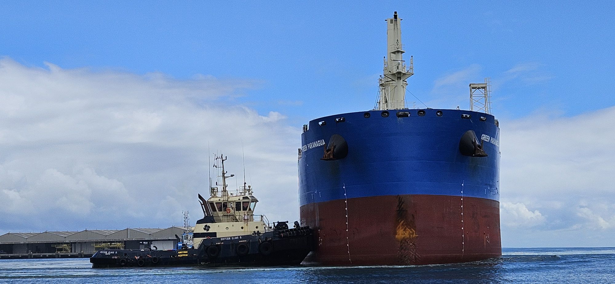 Leider nach ca. 250 Meilen wurde der Passat durch eine Kaltfront gestört und wir ankern in einem Industriehafen. (Barra do Riacho)