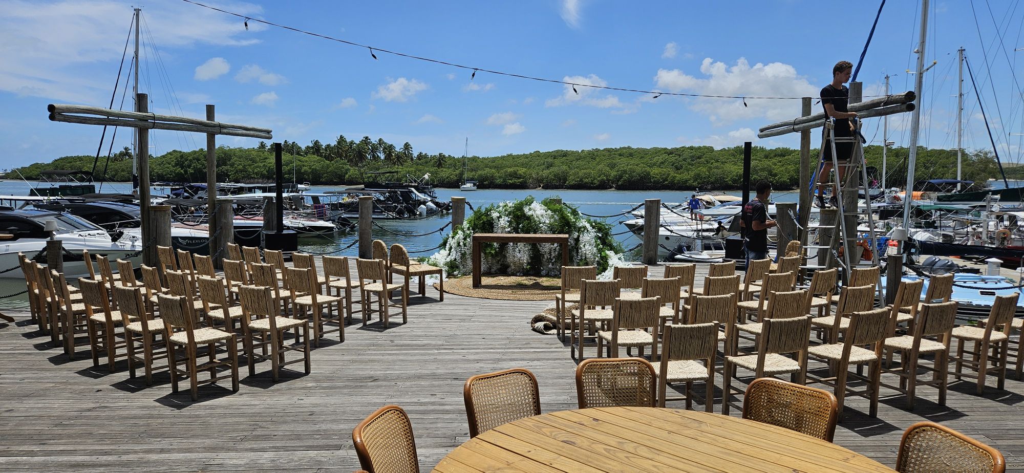 Die Urca Marina hat nicht nur ein spezielles Frischwassersystem sondern eine coole Dingi Parkanlage. Dies ist eine Dingi Insel mit einem Fährsystem.