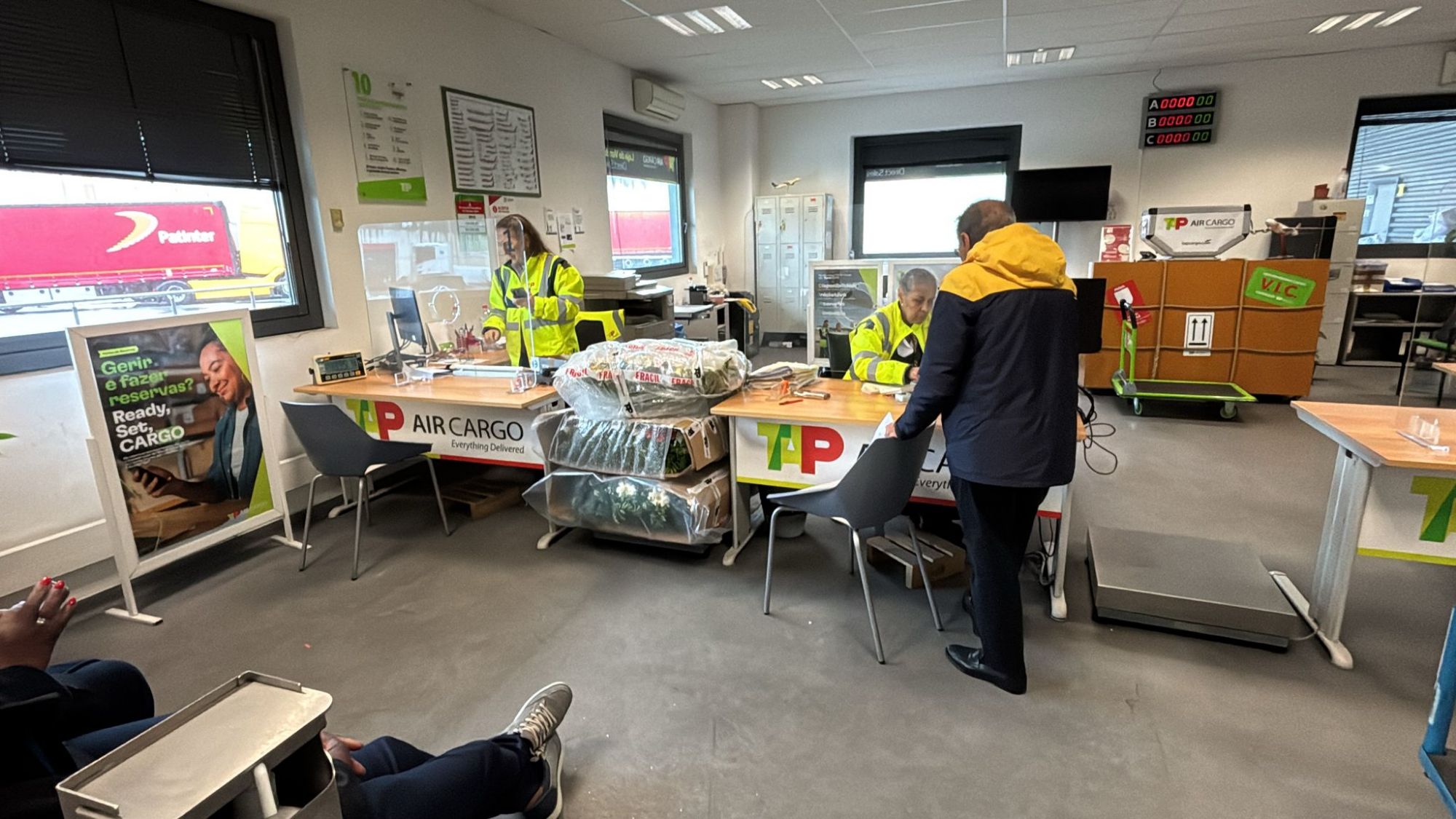 Wir sind mit einem Taxi rund um den Flughafen gefahren und besuchten das Büro von TAP Cargo.